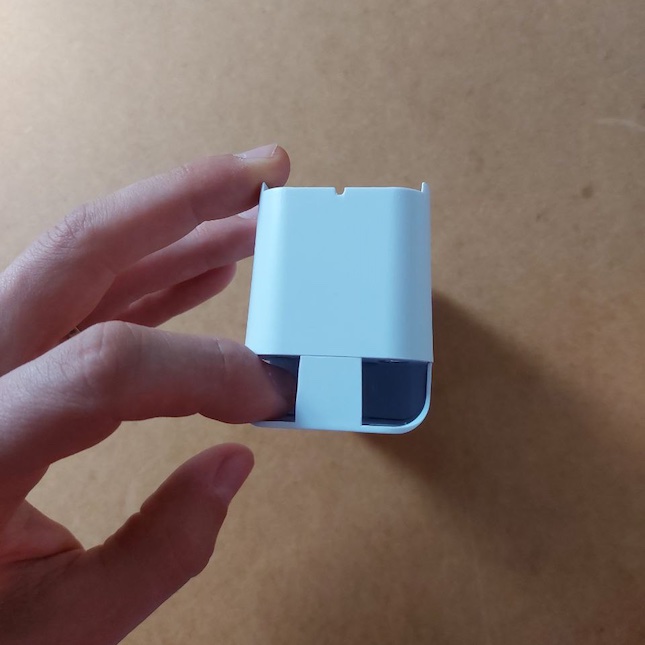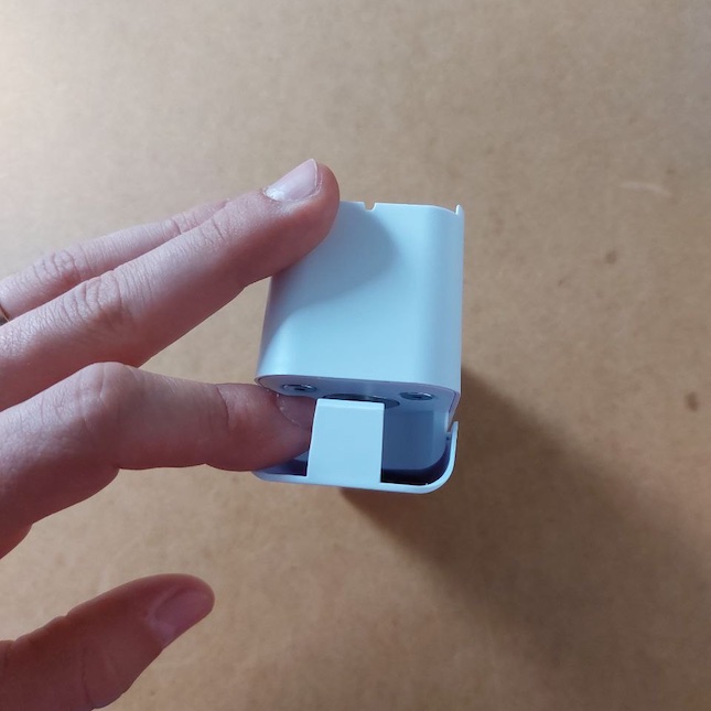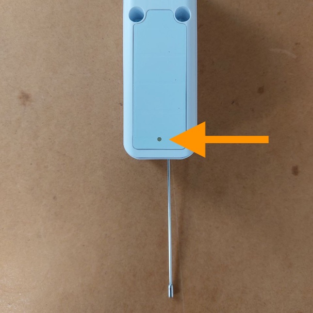 Before replacing the cover, activate the device by inserting the metal pin into the small hole on the bottom of the device. Ensure that a light indicator on the front of the device starts blinking.