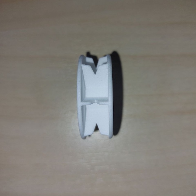 If the cord does not grip with the above gearwheel, try using the gearwheel designed for standard-sized beads (shown in the next section), which features a wider, partial V shape in the blades. The wider, partial V shape tends to work better with thicker cords, while the fully V-shaped blades are more suitable for thinner cords.
