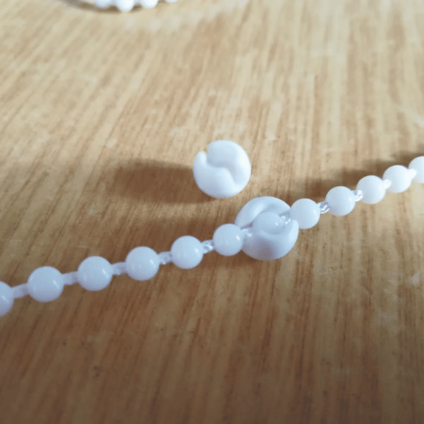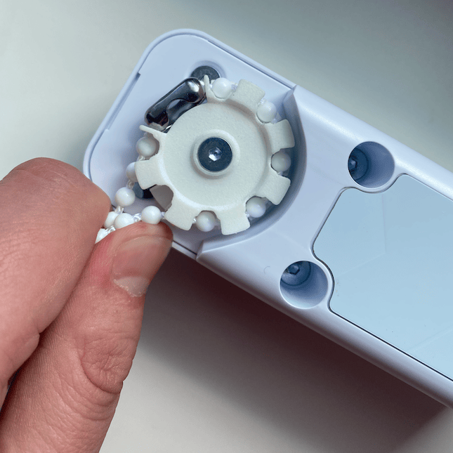 Ensure that the chain does not have parts that could block its movement through the Smart Shades 3, only the compatible connector link can move through the gearwheel mechanism.